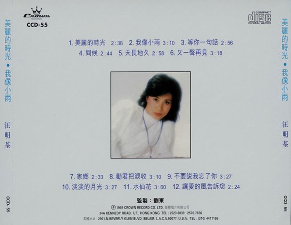 原版1982年出版,这张是复刻版本。估计这张是汪明荃的首张国语专辑,冲这个也得支持一下吧。当时这样的歌曲就是流行歌曲了,现在听来就是民谣。