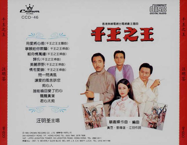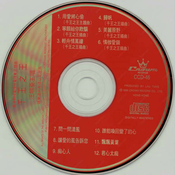 : 01. 用爱将心偷(千王之王主题曲) 02. 归帆(千王之王插曲) 03. 轻舟情万缕(千王之王插曲) 04. 美丽原野(千王之王插曲) 05. 宁愿给你欺骗(千王之王插曲) 06. 情枷爱锁(千王之王插曲) 07. 问一问清风 08. 让爱的风告诉你 09. 痴心人 10. 谁能唤回变了的心 11. 飘飘黄叶 12. 君心太痴