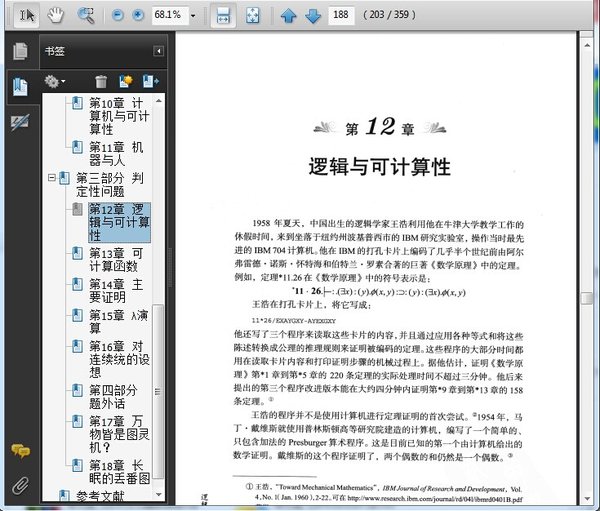 图灵机是英国数学家阿兰·图灵提出的一种抽象计算模型,佩措尔德编 著的《图灵的秘密:他的生平、思想及论文解读》深入剖析了图灵描述图灵 机和可计算性的论文《论可计算数及其在判定性问题上的应用》。书中在详 解论文的同时,附带了大量的历史背景资料、图灵的个人经历,以及图灵机 对人们理解计算机、人类意识和宇宙所产生的影响。 《图灵的秘密:他的生平、思想及论文解读》适合所有计算机科学专业 的学生、程序员或其他技术人员,同时也适合欲了解图灵生平以及他构建图 灵机的思维过程的读者阅读。