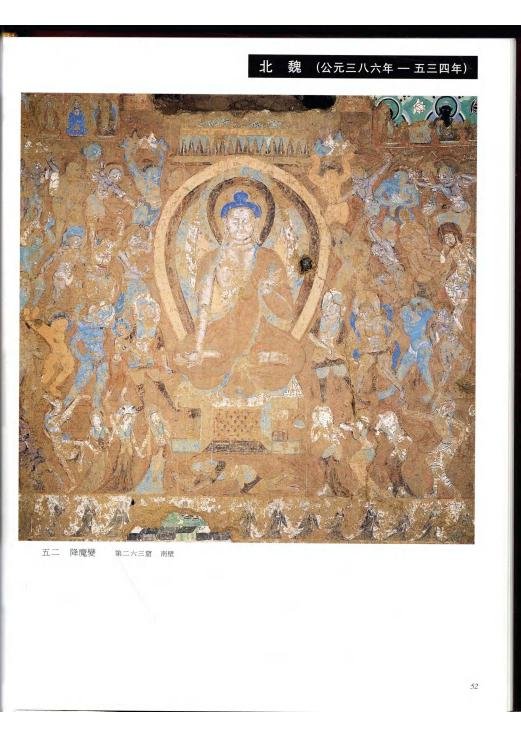 如果说在通常情况下,在一百多年的时间裹。宗教壁画的基本题材主题、绘画技法风格、景观、佛像及其服师造型,一般下会出现重大明显的发展变化。那么,在敦煌莫高窟北凉、北魏壁画中却实现了这种变化。比如,基本髓材主题由「侧重宣扬忍辱、苦修、无原则地施舍和自我牺牲。转向注重表现说法、极乐净土;绘画技法风格从质朴、粗扩转向精细、华丽,景观、佛像及其服饰造型由印度类型转向中圃类型。总之,这些壁画从内容到形式发展变化幅度之大、速度之快是前所未有的。这些发展变化为人们进一步认识宗较美术,乃至整个美术发展历史的规障提供了难得的史料。因而增加了这部壁画集独特的艺术历史价值。