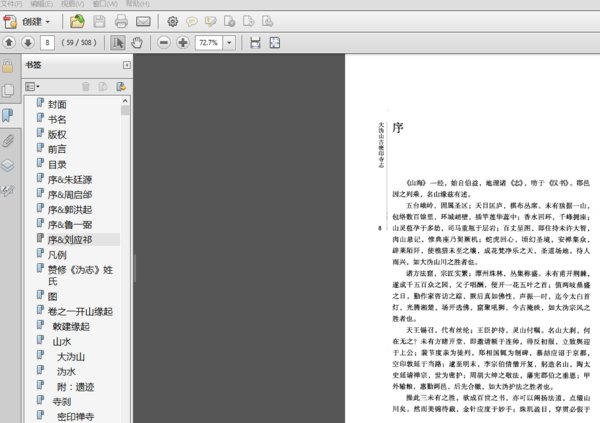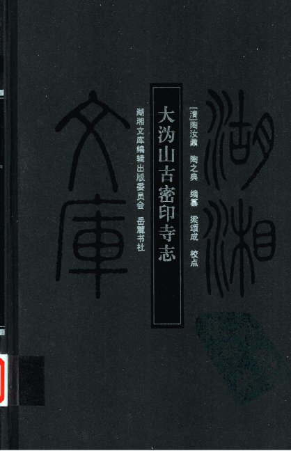 清康熙前期陶汝鼐、陶之典父子编纂。卷一为开山缘起、山水、寺刹等,卷二为法系、功行表、法要,卷三为法要、佛事,卷四为塔墓、庄产等,卷五至卷八为各类诗文。除了大沩山本身的佛教、山水文化资料外,也收录了隶属于沩山禅宗系统的芙蓉山、浮山、泉塘山、白云峰、龙山等处的佛教文化资料,既是一部体例严整、线索清晰、资料丰富的佛教文化著作,又是一部格调高雅、令人心旷神怡的山水文化著作。