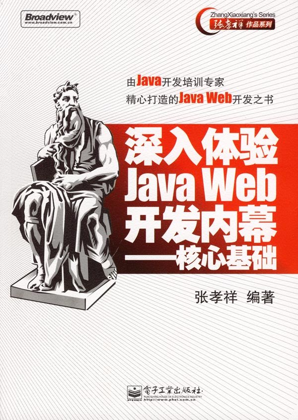 深入体验JAVA Web开发内幕——核心基础 基本信息·出版社:电子工业出版社 ·页码:549 pages ·ISBN:7121032090 ·条码:9787121032097 ·版次:2006年10月第1版 ·装帧:平装 ·开本:16开 -------------------------------------------------------------------------------- 内容简介   80%的内容为原创!60%的内容为绝无仅有!由Java培训专家张孝祥老师精心打造的Java Web开发之书。张孝 祥老师领悟新事物的能力极强,非常善于自学和思考,编程反应速度快,调试程序、排查错误更是一绝, 为众多程序员所佩服,他的书值得购买。   本书深入地揭示Java Web开发内幕,细致地解释许许多多来自开发第一线的一知半解的问题。阅读本书,可以为您详细地剖析Java Web开发的全过程,使您轻松地解决在使用Java进行Web应用开发遇到的各类疑难杂症。   本书用途之一:许多公司的技术经理在招聘新员工开始做一个项目之前,都将本书发下去,要求员工熟读此书,以免在项目中走弯路和避免许多潜在的隐患,并对员工说:“先把细节搞得明明白白了再做,这样你我心里都踏实,免得项目做完后自己都不敢肯定有多少隐患。”   本书深刻且通俗地揭示Java Web开发内幕,使您由内而外地明白使用Java进行Web应用开发的全过程——从XML基础知识到HTTP详述及相关体验,从用Tomcat配置Web站点到HttpServletResponse和HttpServletRequest的应用,以及JSP,JavaBean等Java Web开发相关方面都讲解得深入浅出、通俗易懂。   本书适合所有Web应用的开发人员、Java程序员在工作和学习中参考阅读,也适合作为相关专业本科生、研究生的学习参考资料,也可作为相关培训机构的培训教材。 -------------------------------------------------------------------------------- 作者简介   张孝祥,中国著名IT培训教育专家,具有多年软件开发和教学经验,直接面授培训过数以万计的软件开发人员,深受学员们的好评和喜爱,现任北京传智播客教育科技有限公司(www.itcastn.cn)的教学总监。张孝祥老师正在逐步将自己多年的开发与培训经验心得编写成通俗易懂的书籍,目前已出版《Java就业培训教程》和《JavaScript网页开发——体验式学习教程》书籍和配套的教学视频录像。 -------------------------------------------------------------------------------- 媒体推荐 书评 由JAVA开发培训专家精心打造的Java Web开发之书! 中国著名Java开发培训大师张孝祥心血力作! 100%的每一句话都是经过推敲和自己辛苦“扣”出来的!   力求达到“多一句没用,少一句不行”的效果”! 80%的内容为原创!60%的内容为绝无仅有!绝不在书中加一些“佐料”来充篇幅,奉献给读者的全部都是“乾货”!   本书深入地揭示Java Web开发内幕,细致地解释许许多多来自开发第一线的一知半解的问题。阅读本书,可以为您详细地剖析Java Web开发的全过程,使您轻松地解决在使用Java 进行Web应用开发遇到的各类疑难杂症:XML基础、用Tomcat构建Web站点、HTTP协议详解、Servlet开发基础、HttpServletResponse的应用、HttpServletRequest的应用、会话与状态管理、JSP、JavaBean在JSP中的应用。 本书用途之一:许多公司的技术经理在招聘新员工开始做一个项目之前,都将本书发下去,要求员工熟读此书,以免在项目中走弯路和避免许多潜在的隐患,并对员工说:“先把细节搞得明明白白了再做,这样你我心里都踏实,免得项目做完后自己都不敢肯定有多少隐患。” -------------------------------------------------------------------------------- 编辑推荐   本书深入地揭示Java Web开发内幕,细致地解释许许多多来自开发第一线的一知半解的问题。阅读本书,可以为您详细地剖析Java Web开发的全过程,使您轻松地解决在使用Java进行Web应用开发遇到的各类疑难杂症。   本书用途之一:许多公司的技术经理在招聘新员工开始做一个项目之前,都将本书发下去,要求员工熟读此书,以免在项目中走弯路和避免许多潜在的隐患,并对员工说:“先把细节搞得明明白白了再做,这样你我心里都踏实,免得项目做完后自己都不敢肯定有多少隐患。”   本书深刻且通俗地揭示Java Web开发内幕,使您由内而外地明白使用Java进行Web应用开发的全过程——从XML基础知识到HTTP详述及相关体验,从用Tomcat配置Web站点到HttpServletResponse和HttpServletRequest的应用,以及JSP,JavaBean等Java Web开发相关方面都讲解得深入浅出、通俗易懂。   本书适合所有Web应用的开发人员、Java程序员在工作和学习中参考阅读,也适合作为相关专业本科生、研究生的学习参考资料,也可作为相关培训机构的培训教材。 目录 第1章 XML基础  指点迷津:什么是配置文件  1.1 XML技术概述   1.1.1 XML的起源与作用   1.1.2 XML文档结构   1.1.3 XML与HTML的比较   1.1.4 XML与数据库的比较  1.2 XML的基本语法   1.2.1 文档声明  动手体验:加深对encoding属性的理解   1.2.2 元素定义   1.2.3 属性定义   1.2.4 注释   1.2.5 空格和换行的处理   1.2.6 CDATA区   1.2.7 特殊字符  动手体验:加深对特殊字符的了解   1.2.8 处理指令  动手体验:使用CSS控制XML文档的显示  1.3 XML的约束模式   1.3.1 格式良好的(Well-formed)XML   1.3.2 XML的约束模式   1.3.3 XML的约束模式语言   1.3.4 有效的(Valid)XML  1.4 DTD   1.4.1 对DTD的初步认识   1.4.2 在XML文档中引入外部DTD文件   1.4.3 在XML文档中直接嵌入DTD定义语句  1.5 DTD的语法细节   1.5.1 元素定义   1.5.2 属性定义   1.5.3 实体定义  动手体验:加深对引用实体的了解  1.6 XML Schema   1.6.1 XML Schema与DTD的比较   1.6