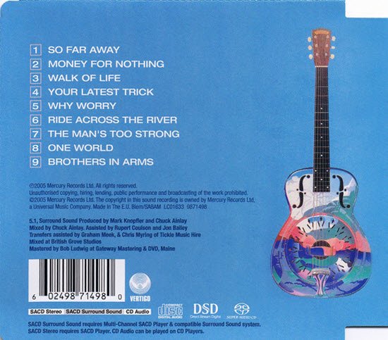 : 1. So Far Away (full version) 5:08 2. Money for Nothing 8:23 3. Walk of Life 4:09 4. Your Latest Trick 6:30 5. Why Worry? 8:29 6. Ride Across the River 7:04 7. The Man's Too Strong 4:35 8. One World 3:38 9. Brothers in Arms 6:58
