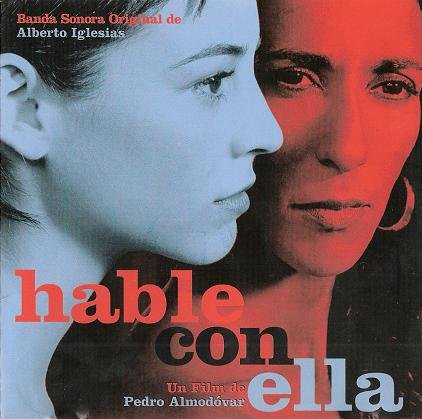 西班牙导演Pedro Almodovar,从1995年的《The Flower of My Secret》起与西班牙顶尖电影配乐作曲家Alberto Iglesias合作,《Hable con ella》是阿莫多瓦自1999年奥斯卡最佳外语片的《我的母亲》(配乐同样由Alberto Iglesias所写)后的最新力作。伊格雷西亚斯为阿莫多瓦对爱情、失去所爱、孤独与执迷的这则冥想,献上以吉他弦乐为主,时而温柔优雅、时而紧张忧郁的音乐,并再次穿插著许多拉丁乐坛名家的客串演出。其中最特别的,是巴西音乐传奇人物,Caetano Veloso(他的声音在王家卫《春光乍现》中令许多影迷惊为天人)亲自现身于电影里,在海边咖啡厅演唱他那首知名的"Cucurrucucu Paloma"(“鸽子歌”),清简的诠释曾被导演描述为“动人心弦、亲密”。巴西bossa nova女歌手Ellis Regina的"Por Toda a Minha Vida"亦相当耐听。