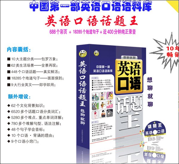 在《英语口语王》想说就说持续·畅销的同时,非常非常多的读者打来电话、发来Email或短信询问:“《英语口语王》想说就说的内容非常实用、详细,非常适合随学随用。在学完之后,发现自己和老外进行一般日常交流已不成问题,于是就想进一步提高自己的口语水平,想就一个话题进行深入地探讨,想体验那种用英语争论得“面红耳赤”的快感,昂秀有没有关于话题等方面的英语学习书呢?”