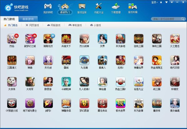 快吧游戏是一款简单易用的游戏下载管理软件,提供了数万款单机游戏、网络游戏、网页游戏、小游戏,一键下载,自动安装。