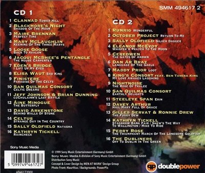 01. Clanned - Tower hill 02. Blackmore's Night - Shadow of the moon 03. Maire Brennan - Perfect time 04. Mary McLaughlin - Keening of the three Marys 05. Loose Goose - Back to Avalon 06. Jacqui McShees's Pentangle - The house carpenter 07. Eden's Bridge - I lift up my eyes 08. Elisa Waut - Sad King 09. Finistere - Paradise of the celts 10. San Quilmas Consort - Celtic dreams 11. Jeff Johnson & Brian Dunning - Cuchullainn's last battle 12. Aine Minogue - The butterfly 13. David Arkenstone - Behind walls of stone 14. Celtus - Strange day in the country 15. Sally Oldfield - Natasha 16. Kathryn Tickell - Raincheck