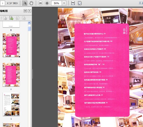 : 01客厅设计的基本要求是什么 05大户型客厅的空间如何进行功能分区 09怎样设计实用的大户型客厅 13如何设计使大户型客厅不显空旷 19如何给背阴客厅增“亮” 23如何设计客厅的色彩 29如何通过照明来烘托客厅氛围 33客厅照明如何设计更合理 37客厅主要使用什么灯具 41客厅选购灯具应考虑哪些因素 47层高较高的客厅怎样搭配灯饰 51层高较低的客厅怎么搭配层灯饰 57如何设计客厅地面的颜色 61如何确定客厅地砖的规格 67客厅旧地砖装修应注意什么 71客厅旧地板装修应注意什么 77客厅原地砖上可否直接铺地板 81乳胶漆客厅墙面如何施工 87客厅墙面常见问题的处理方法 91客厅中的弧形造型如何选材