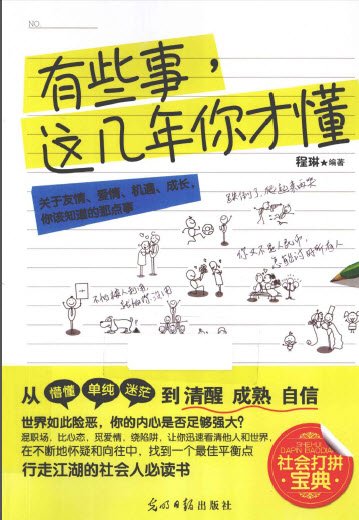 程琳编著的《有些事这几年你才懂》内容简介:因为年龄不同,认识不同,我们眼中的世界也是不一样的。但是这并不是世界在变,而是我们自己在变,所以我们的眼光也就在变。《有些事这几年你才懂》,让你从懵懂、单纯、迷茫到清醒、成熟、自信,让你更客观、更明确地清楚认识这个真实的世界。关于友情,关于爱情、关于机遇、关于职场、关于现实。