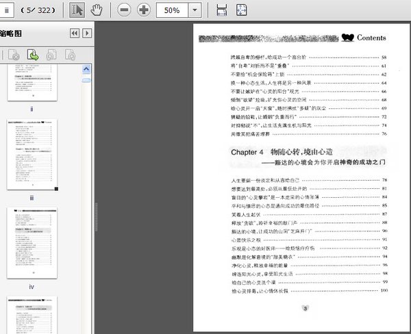 : Chapter 1 阳光心态——有良好的心态引路,幸福随心而来 驾驭命运的“坐骑”,做心态的“骑师”——心宽路就宽 积极心态让你的命运“点石成金” 积极心态是开启财富之口的金钥匙 让心态的阳光,普照幸福人生路 用美好的期盼加大幸福的内存 把不幸当作幸福的起点,让心灵解放 美丽心灵是吸引幸福的磁场 幸福枕畔,是“洗尽铅华永葆青春”的心灵 送出一朵玫瑰,赢得整个春天 活在当下,愉悦人生每一天 点亮“自尊自爱”的灯塔,为你的幸福导航 给生活一座热情的宝藏 底低跳板迎来高起点——吃亏中的“蓄势待发”智慧 心态高度决定你的人生高度 Chapter 2 卓越心态——用卓越心态点燃成功的圣火 用积极的态度在勤奋中坚持,不要给成功按下“暂停键” 用积极的黄金定律支配自己的人生 心态好,一切都好 沙砾还是星空——好心态可以打破命运的“囚笼” 每天多干一点点——淘选沙子里的黄金 做心灵沙漠里的仙人掌——自信让你无坚不摧 找到逆境中等量的种子 用卓越的心态扬帆起航 自我激励是成功的强大助推器 自助者天助之 打破思维设限,勇闻“人生竞技场”的禁区 好风送我上青云——“借力n与“抱团”的成功哲学 成功就在下一秒一挑战你的毅力极限 背水一战的决绝心态,让你绝处逢生 从跌倒的地方站起来飞扬 Chapter 3 突破心惊——用心灵的力量征服负面心态,寻找人生光明面 “恐惧心态”突围:征服黑暗里的窄桥 撤掉恐惧的“心理藩篱”,把恐惧驱除心外 心灵松弛课,给恐惧的神经松松绑 忧虑是人生最丑陋的皱纹 拔掉心中的杂草,让忧虑到此为止 跨越自卑的栅栏,给成功一个高台阶 将“自卑”对折而不是“重迭” 不要给“机会保险箱”上锁 换一种心态生活,人生将是另一种风景 不要让嫉妒在“,心灵的阳台”观光 倾倒“欲望”垃圾,扩充你心灵的空间 给心灵开一扇“天窗”,随时拂拭“多疑”的灰尘 猜疑的铅鞋,让婚姻“负重而行” 对抑郁说“不”,让生活充满生机与阳光 用微笑把痛苦埋葬 Chapter 4 物随心转,境由心造——豁达的心境会为你开启神奇的成功之门 人生要留一份淡定和从容给自己 想要达到最高处,必须从最低处开始 盲目的“心灵攀岩”是一本虚荣的心情账簿 平和与慎思的心态是通向成功的最佳路径 笑看人生起伏 释放“贪欲”,聆听幸福的敲门声 豁达的心境,让成功的山洞“芝麻开门” 心是快乐之根 乐观是心态的好医师——给烦恼疗疗伤 幽默是化解窘境的“甜美糖衣” 净化心灵,释放幸福的能量 缔造阳光心灵,享受阳光生活 给自己的心灵洗个澡 给心灵排毒,让心情休长假 转换心境,人生处处色彩纷呈 锻造优质心灵,培养谦虚的品性 以超越成功的姿态,去超越平庸的心态 天地只在心问,心宽天地就宽 放下身段,路越走越宽 感恩的人生是富裕的人生,更是温暖的人生 Chapter 5 婚姻心态 ——好心态让婚姻之树长青 男人向左,女人向右 女人对男人的八大误解心态 好心态是和谐婚姻的“按摩师” 脱去“烦恼”的外衣,带“快乐”回家 以谈恋爱的心态去经营彼此的婚姻 包容的心,是拯救婚姻命运神奇的“水晶球” 好心态是引领你绕过婚姻暗礁的超级舵手 不耍将归宿寄存进婚姻的“保险箱” 不可不警惕的几种婚外恋心态 警惕,男人惧怕的“婚姻心态”陷阱 警惕,婚姻“心态的刹车闸”失灵事故 用阳光的心态面对感情的挫败 “甜柠檬”与“酸葡萄”心理:做失恋最好的心理医师 抹平初恋暗影,给心灵涂一层隐形粉底 生活,你可以打败我,却打不倒我 爱情,同样也可以有优雅而华丽的转身 Chapter 6 人脉心态 ——积极耕耘最美丽的人际花园 灵魂的挚友,心灵的财富 用一朵花的真诚,播种友情的春天 合上过度洞察的眼睛,你能包容多少你就拥有多少 慷自己之慨,将人心尽数收入囊中 撤去友情的“屏风”,诚心是裂痕的“粘合剂” 摘掉“羞怯”的帽子,成功是一种意念力 别让怯懦挡住了阳光 主动出击:用热情给他人的情感把脉 思维“篡位”,在他人的立足点上思考 微笑,是成功人生的一封“介绍信” 谦虚是人脉的“掘金机” “一诺千金”,是人格魅力的金字招牌 找找友情的“营养圈”一一慎重里的择友智慧 与人为善即与己为善 不做他人自尊的“掠夺者” 赞美他人的“三明治法则” 舍弃暗藏着另一种获得,分享意味着共同拥有 Chapter 7 工作心态 ——心态决定状态。责任心胜于能力 工作态度决定事业上的成就 全力以赴的态度可以为最平凡的工作增辉 责任感,是成功的“任意门” 工作的硕果总是奖赏那些自动自发的人 勤奋实干可以敲碎“奇迹”的蛋壳 敬业的心态,是沙漠里的活水源 给工作一个沸点,让热情喷薄而出 放弃工作的透支感,建立你的“兴趣银行” 不为薪水而工作 将工作装潢成你的“梦工厂”——为梦想而工作 开掘“情绪深井”,培养你的自驱力 在工作蓝图上拓展你的未来愿景 打破内心抵触的结痴,吸收自由阳光 将抱怨清零,将幸福的未来寄存 超越平庸才能创造完美人生 Chapter 8 健康心态 ——心态健康身体才能健康 破译健康与心态的密码 治病先治心 将“积极心态”的巨款,存入你的健康银行 释放“劳累”,给身心放个假 兑换青春的“心灵药方”让你的心与青春亲密接触 消除心理疲劳的良方 “喜悦治疗”:阳光融化疾病的”冰山” 有益于健康的七种心态 “情绪活力”:操作健康心态