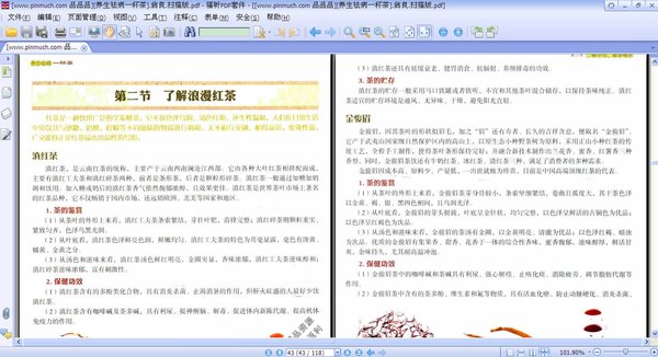 如今.茶已经成为全世界人民喜爱的饮料之一。究其原因.不仅在于它独特的口味.更在于它具有滋养身心、防病祛病等保健作用。据测定,茶叶中台有胶质、粗纤维、叶绿素、维生素、鞣质、黄酮类及生物碱。因此.茶除了众所周知的提神、解乏、利尿、明目等功能外,还有增强记忆力,抗菌消炎,止喘祛痰.调节甲状腺功能,预防心血管病、糖尿病和放射性物质损害的作用。有学者发现:茶叶可减少过氧化物的产生.有助于肉类的保鲜。有的荼还有抗癌作用。