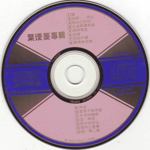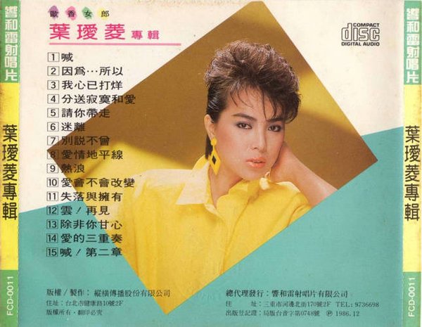 叶瑷菱是一位很洋气的歌手,本张是她1986年发行的个人第二张专辑。“分送寂寞和爱”是我最喜欢的一首歌曲。