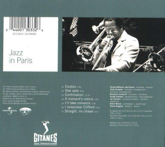 Trombonist Slide Hampton, just 30 years old at the time of this octet session in Paris, had already developed into a forward-thinking arranger. Scoring a mix of standards and well-known jazz compositions for a group that included two trombones, two trumpets, tenor sax, baritone sax, bass, and drums, Hampton's stunning interpretation of "Exodus" (from the film of the same name) still sounds very fresh decades later. The brisk "Star Eyes" might suggest the so-called "cool" players of the 1950s, featuring excellent solos by trumpeter Richard Williams and bassist Butch Warren. Baritone saxophonist Jay Cameron shines in "Confirmation," while the leader explodes in a powerful rendition of "Moment's Notice." Finally reissued as a part of Verve International's wide-ranging Jazz in Paris series, fans of the trombone will definitely want to acquire this very reasonably priced CD.