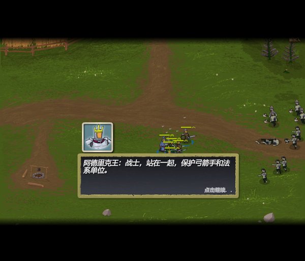 游戏中主要目标就是保护你的手下,不要让敌人逃离战场。每当牺牲一个士兵或者有一个敌人逃跑都要消耗一颗心,心的剩余数量会影响到战斗后的奖励。 每个单位在面对6个敌人时,不会被其余的敌人近战攻击。如果一个单位退出战斗,则立刻会被敌人的背刺击中,但如果有两个或以上的单位共同攻击同一目标时该情况不会发生。当单位被快速移动的敌人包围时不能退出战斗。 所有的单位在战斗中都可获得经验,经验会影响整体单位的属性:HP、攻击、攻击速度等。每个单位有四个不同的级别,分别是:普通、熟手、老兵和精英,越往上能力越强。达到精英状态的一阶单位可以升级成二阶。