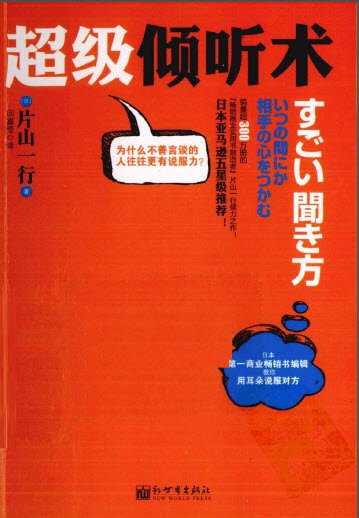 《超级倾听术》“来自日本“第一商业畅销书制造者”58年人生的感悟! 一切人际关系都从“认真倾听”开始! 在《超级倾听术》当中,有着日本“金牌编辑”,“第一商业畅销书制造者”之称的片山一行根据自己多年经验,为我们揭开了人际沟通中的一个重大迷题:为什么不善言谈的人往往更有说服力? 片山先生认为,不善言谈的人之所以更容易建立人脉,更有说服力,原因在于:他们往往更懂得倾听。倾听正是现代人在沟通过程中所日渐疏远的技能。《超级倾听术》通过结合自己58年的人生经验,片山先生将告诉我们该如何:通过倾听调动对方情绪,将谈话对象引入你想要的氛围;通过倾听来发掘他人才能,建立融洽的人际关系;通过倾听来提高自己的说服力,用耳朵说服对方,达到自己想要的目的。