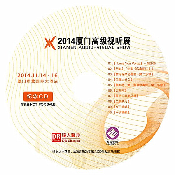 今年2014厦门高级视听展的纪念CD选取了近年来在国内音像界颇为活跃的两家唱片公司达人艺典和龙源的近期力作,
