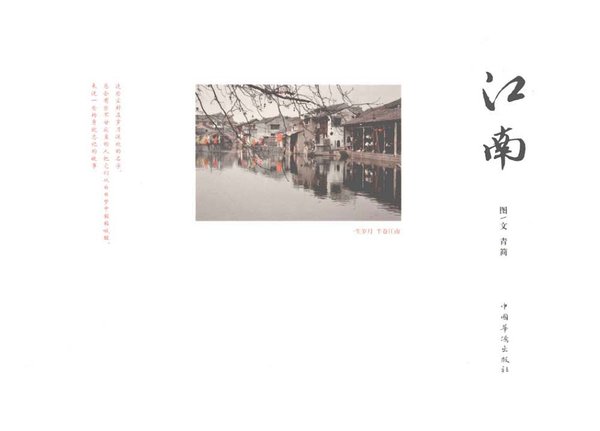 《江南》为准专业摄影师青简的首部主题随笔集。本职医生,只因热爱摄影,痴恋江南美景,徐行万里路,且行且拍,记录所见人情与风景。全书根据拍摄对象不同分了五大主题:风景旧曾谙(地域风光类),人家尽枕河(水乡古镇类),更爱闲花木(植物花卉类),未老莫还乡(人文纪实类),欲辨已忘言(主题景物类)。 《江南》作者以其女性独特视角,发现并记录江南生活的点滴,其细腻之感无人能敌。作者本身在各种文艺、摄影类网站拥有一定人气与支持度,且图片受到广大网友喜爱与支持。《江南》全四色印刷,独特手揉纸做封面,凸显本书唯美、婉约气质。