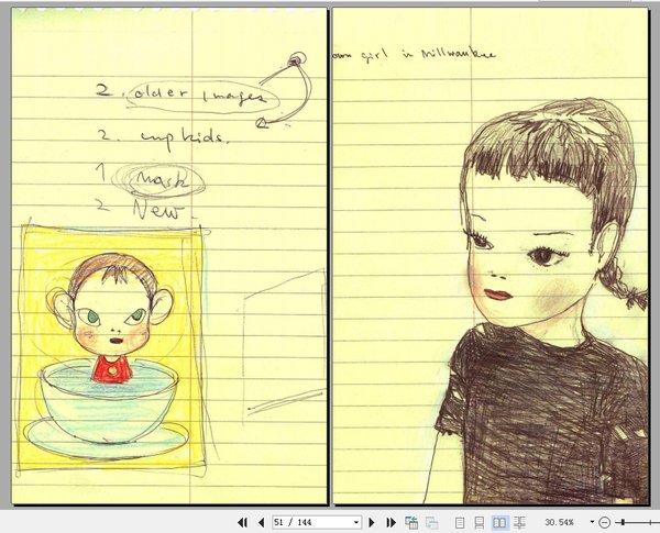 奈良美智: 风靡全世界的日本著名现代艺术家。 作品屡创亚洲最高拍卖价。 数千万年轻人追捧的符号级偶像。 1959年生于青森县弘前市。 爱知县立艺术大学研究生课程结业后赴德,在德国国立多兹塞尔多尔夫艺术学院进修。 1994-2000年在海伦进行创作。 1998年在UCLA担任了三个月的客座教授。 作品曾在欧、美、日的美术馆展出,深受欢迎。笔下的招牌便是头大大的小孩、洁白驯良的狗、以及身着绵羊装的儿童,非常可爱。笔下的人物,脸上那对眼尾上吊、不怀好意的双眼其实是他作品的特色,那种眼中流露出不友善的神情,同时又身处在寂寥、淡漠背景中的画作主角们,不禁让人由怜生爱。