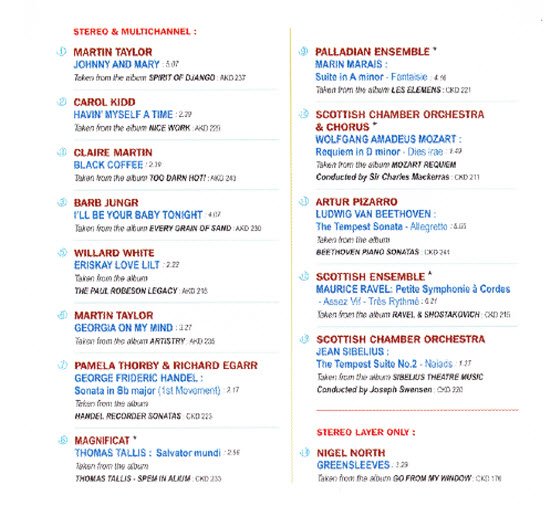 A superb collection of tracks from Linn's Super Audio CD catalogue.