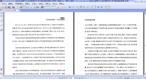 这本《李书福的偏执智慧》由张明转编著。成功人士的身上,都有一些值得我们学习的特质,李书福的特质在于他的偏执智慧。这种智慧除具有惊人的胆识和魄力之外,还离不开他敏锐的商业嗅觉和独到的行业判断力,以及独树一帜的管理智慧和人才战略。李书福看似疯狂的表象下,实质潜藏的是理性的分析、专业的运作、巧妙的借势以及最重要的、偏执的智慧。