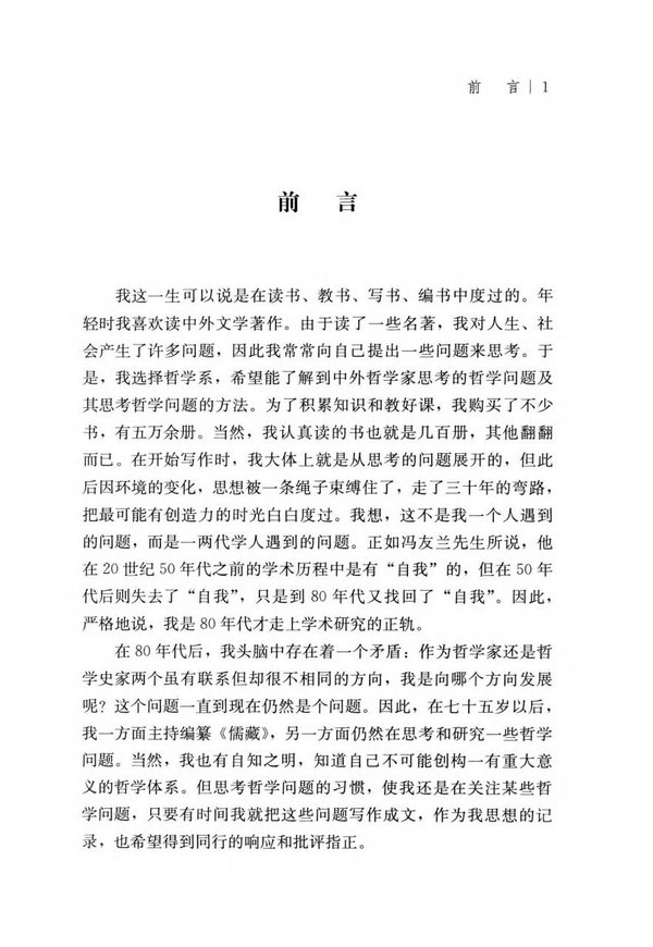 本卷是作者在中国哲学研究方面论文的汇编。书中勾勒了作者研究哲学的历程,分析了中国传统哲学的范畴体系等核心问题,提出五四运动以来的文化是在保守主义、自由主义、激进主义三种力量所形成的张力制约下前行,从中国现代哲学的探索与创新角度指明了中国现代哲学未来发展的方向,并提出了“创建中国解释学”的理论构想,最后还缅怀了中国现代哲学家对中国学术的贡献。