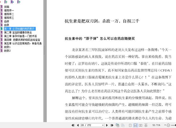 【使用方法】每天10分钟,每次读1节,40天读完。1. 酌情购买第五章总结的33种非处方药备用;2.生病时,通读该病用药注意事项及其所属章节用药总原则;3.参照药品说明书用药;4.如手边药物非书中推荐,参照附录查证是否可用。