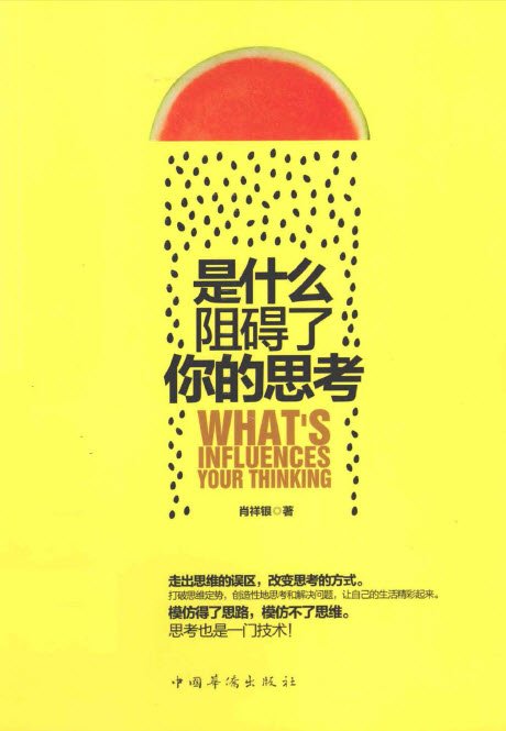 《是什么阻碍了你的思考》由肖祥银编著。 《是什么阻碍了你的思考》由以下三个部分组成: 在第一部分“查找思维程序故障,弄懂思考受阻原因”中,作者对思考受阻的原因进行了分析,认为传统思维模式是根本原因,以至于出现认知偏误、思考陷阱、局限性思维、惯性思维、情绪化思维、依赖前例式思维、循规蹈矩式思维、恐惧变化式思维、缺乏未来式思维等易将人的思维引向死路的“故障”;强调了拥有正确的思维,正确地思考,灵活改变自己的思维,才能使自己的路越走越宽,才能演绎出更加精彩的人生画卷。 在第二部分“了解大脑,植入思维新程序”中,作者认为,思维是人类最宝贵的资源,它就像蕴藏在大脑中的石油,只要我们改变原有的错误的思维模式,给大脑植入新的思维程序,比如开发右脑思维资源、改善心智模式、改善潜意识层思维模式、加强专业性较强的思维训练、养成良好的思维习惯等,驱动深层思维,开动大脑,拓展思维,就能使思维资源得到充分地开发,使我们的大脑更加灵活,使我们的思想更加深刻,从而帮助我们创造出越来越多的美好篇章。 在第三部分“解读思维策略,进行正确思考”中,作者提出了科学的、切实可行的思维模式,诸如创新性思维,逆向思维,形象化思维,辩证思维,批判性思维,收敛思维,发散思维等,帮助我们从根本上解决思维问题,让思维更具准确度、清晰度、深度、广度和速度,从而提高解决事情的能力和创造力!