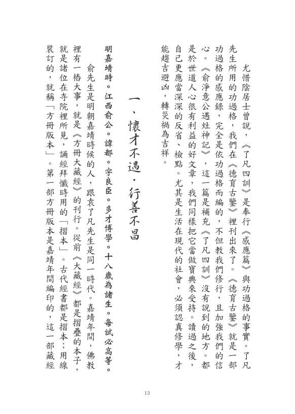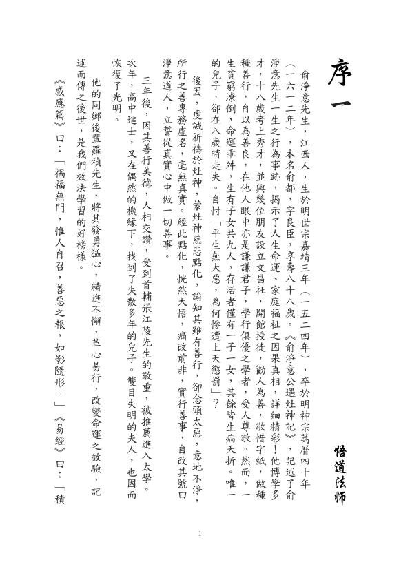 伏愿见闻此书者咸得法益,效法俞净意公,勇断意恶,彻净心地,明其明德,止于至善,现前改造命运,当来高登圣域。不胜馨祷,是为序。