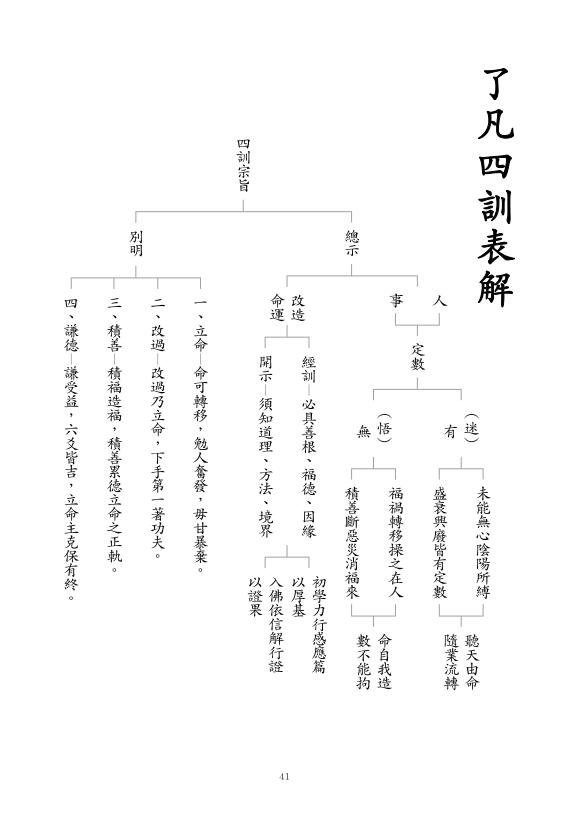 《了凡四训》,原名《训子文》。袁了凡先生生于明朝嘉靖十二年(公元一五三三),卒于明神宗万历三十四年(一六~六),享寿七十四,浙江嘉善人。早年被孔先生将一生命运算定,知「生死有命,迟速有时」,于是淡然无求。后遇云谷禅师,为其开示「命自我立, 福自己求」的道理,遂改别号学海为了凡。了凡先生深深服膺云谷大师教诲,尽其一生,实 践改过积善之法,成为世人行善修德改造命运的杰出典范。《了凡四训》一书,是袁了凡先 生教育儿子的四篇家训,文理俱畅,豁人心目。清末民初,净土宗十三祖印光大师极力提倡, 在印刷技术不发达的当时,其印量达数百万册之多,因而流通甚广。