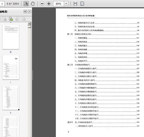 序第一章 股市软件上的K线分析 第一节 单根K线 第二节 双根K线 第三节 三根K线 第四节 多根K线的典型组合形态第二章 股市软件上的均线分析 第一节 均线概述及基本买卖法则 第二节 均线组合的特点分析 第三节 日均线的炒股技巧 第四节 周、月均线的炒股技巧第三章 股市软件上的趋势分析 第一节 趋势的分析 第二节 趋势线和趋势通道 第三节 趋势的炒股技巧第四章 股市软件上的形态分析 第一节 股价形态概述 第二节 股价形态的炒股技巧第五章 股市软件上的缺口分析 第一节 缺口概述 第二节 缺口的研判及运用 第三节 缺口的炒股技巧第六章 股市软件上的均量分析 第一节 均量线分析 第二节 均量线的炒股技巧第七章 股市软件上的量价分析 第一节 成交量概述 第二节 量价配合分析 第三节 换手率分析 第四节 如何利用软件分析成交量