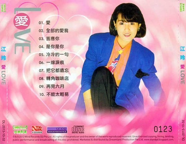 这次的《爱》专辑,是首次CD化的专辑。做成APE后,用Foobar2000播放比特率比较低,是766kbps。本专辑是江玲在歌林的最后一张唱片,销量不是很好。当时的江玲整个人憔悴不堪,小百合几近凋谢。虽后几经立挽狂澜,但这段艰困时期,也让江玲萌生了退出歌坛的疲累感。还好是坚持到了1989年发行了《中国新娘》以后退出歌坛。