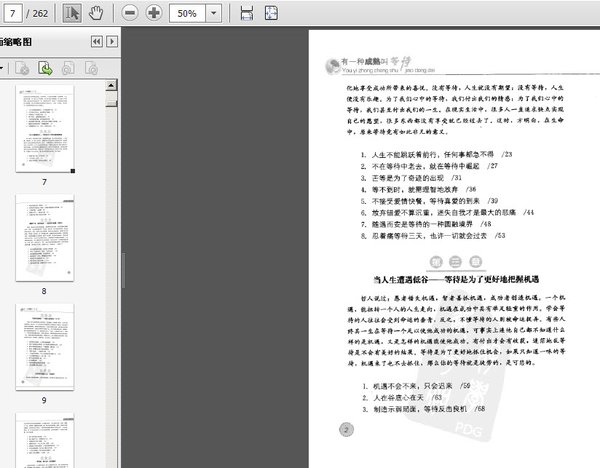 第一章解读等待一等待是人生的另一种形式1.等待是生命的常态2.有了等待,人生才别具魅力3.将等待进行到底,才有翻牌的机会4.如果你等不及,你就永远等不到5.生活本就不易,耐心等待才能发现转机6.孤独是等待的代价,也是领悟人生的必经之路第二章花开自有期——太容易得到的,往往不会懂得珍惜1.人生不能跳跃着前行,任何事都急不得2.不在等待中老去,就在等待中崛起3.苦等是为了奇迹的出现4.等不到时,就需理智地放弃5.不接受爱情快餐,等待真爱的到来6.放弃错爱不算沉重,迷失自我才是最大的悲痛7.随遇而安是等待的一种圆融境界8.忍着痛等待三天,也许一切就会过去第三章当人生遭遇低谷——等待是为了更好地把握机遇1.机遇不会不来,只会迟来2.人在谷底心在天3.制造示弱局面,等待反击良机4.抓住机遇也是一种能力5.在那些有准备的人面前,机遇才能显现它的价值6.“守株待兔”之新解7.能够沉住气,才能成大器8.毛遂自荐才能让你成为明星第四章藏器于身,待时而动——在蛰伏中酝酿一鸣惊人1.成功是等待的结果,也是奋斗的结晶2.用好“以逸待劳”,便可“坐享其成”3.谋划就是超前想事,不观望等待4.每天进步一点点,事情就会有转变5.急功近利只能欲速不达6.敢于把自己放在劣势上7.做好表面文章,迷惑对手壮大自己第五章与时间的博弈——坚持与放弃的“大PK”1.忍耐的时间越长,以后的成就越高2.至死不渝地追求梦想,你才能得到想要的东西3.做任何事得按部就班,不要奢望一蹴而就4.坚持一种赢的态度才能走得更远5.只要不放弃,一切皆有可能6.一份坚持和等待,可让生命更好地持续下去7.人生的精彩常在下一刻上演8.坚守到花开的那一刻9.把冷板凳坐热10.愉快地重复做最简单的事11.成功是慢火熬出来的第六章在等待中摆渡人生“多恼河”1.停下来欣赏生命的美2.勇于接受不平,坚强地活下去3.你看到的只是个侧面4.情绪失控时,先让自己等一刻钟5.困难是让你来克服的,不是用来绊倒你的6.切勿自我设限,活出自己最大的可能7.人活在过程里,而不是活在结果中8.被别人承认需要一个过程第七章等待是一种心态,而非期待1.活好每一天,才是最真实的人生态度2.不悔恨过去,即使创伤也是财富3.不要将时间浪费在无所谓的事情上4.缔造更多的梦想,丰富自己的人生5.得意之时想失意,失意之时想未来6.学会在等待中释怀7.好心态,才能有好命运第八章等待是一种心态,而非期待1.时间不能等待2.孝敬父母不能等3.没把握的事情不能等4.贫穷不能等5.掌握真才实学不能等6.追求幸福不能等7.培养良好的职业习惯不能等8.积德行善不能等9.培养教育孩子不能等10.健康不能等待