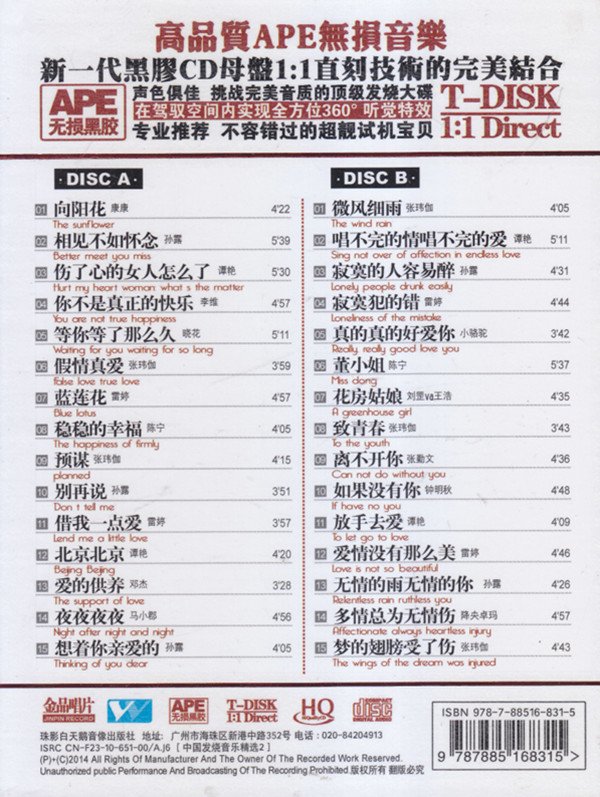 专辑中文名: 人声1号(十大发烧情歌)2CD