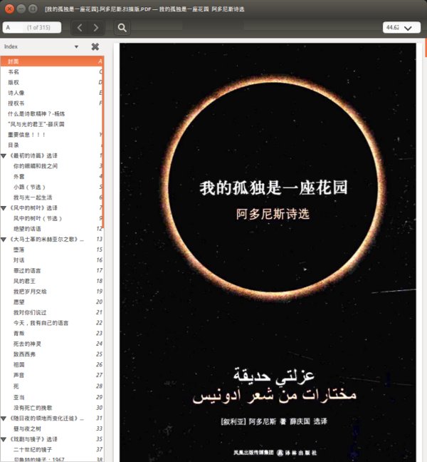 : 什么是诗歌精神? “风与光的君王” 《最初的诗篇》选译 你的眼睛和我之间 外套 小路(节选) 我与光一起生活 《风中的树叶》选译 风中的树叶(节选) 绝望的话语 《大马士革的米赫亚尔之歌》选译 堕落 对话 罪过的语言 风的君王 我把岁月交给 愿望 我对你们说过 今天,我有自己的语言 背叛 死去的神灵 致西西弗 祖国 声音 死 亚当 没有死亡的挽歌 《随日夜的领地而变化迁徙》选译 昼与夜之树 《戏剧与镜子》选译 二十世纪的镜子 贝鲁特的镜子:1967 《对应与初始》选译 儿童 最初的书 最初的爱恋 最初的姓名 最初的话语 《围困》选译 沙漠(之一,节选) 致故去一瞬的歌 致意义的歌 致写作的歌 《纪念朦胧与清晰的事物》选译 短章集锦 《书:昨天,空间,现在》(第一卷)选译 札记 书:昨天,空间,现在》(第二卷)选译 T城 Z城 G城 《风的作品之目录》选译 身体(节选) 白昼的头颅,倚靠在夜晚的肩膀上(节选) 雨(节选) 印第安人的喉咙(节选) 时光的皱纹(节选) 雪之躯的边界(节选) 夏天(节选) 窗户(节选) 流亡地写作的岁月(节选) 灯(节选) 流星的传说(节选) 在意义丛林旅行的向导 《书:昨天,空间,现在》(第三卷)选译 穆太奈比的骨灰 《身体之初,大海之末》选译。 音乐篇·一 音乐篇·二 音乐篇·三 《预言吧,盲人!》选译 盲人在预言中记述的几种境况(节选) 《黑域》选译 短章集锦 《安静,哈姆雷特:你能嗅到奥菲莉娅的疯狂》选译 布满窟窿的被毯(节选) 情人啊,你私下还有另一个约会吗?(节选) 日子:草帽(节选) 游戏,悲剧的初始(节选) 《出售星辰之书的书商》选译 诗歌的双唇印在巴格达的乳房上(节选) 字典(节选) 夏之书(节选) 门后的童年