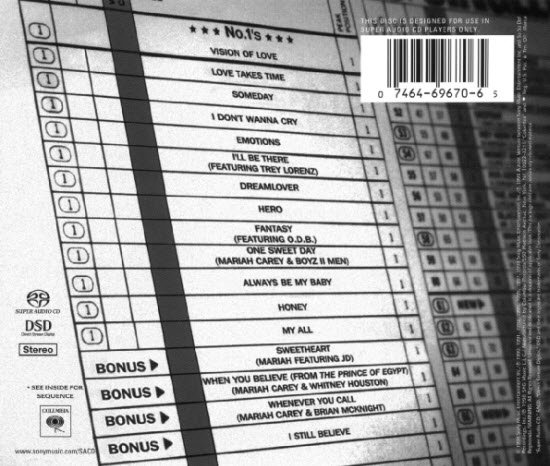 But this Mariah Carey sacd is quite an exception. It's actually a terrifc compliation of her number 1 hits and there are a lot of them. This sacd has warmth, very good impact, deep powerful bass and a thickness to the sound that shocked me greatly. There is a very strong presence to this music and Her voice is rendered very, very impresssively too.