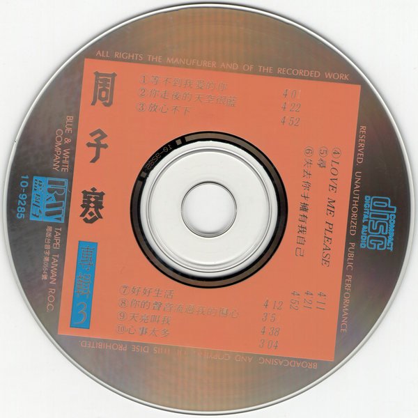 这是周子寒的第三张个人专辑,她是与潘美辰、方季惟等同门的女歌手。外型也同样是披肩发、齐刘海,但感觉没有方季惟清纯可人,有些悲情的感觉。
