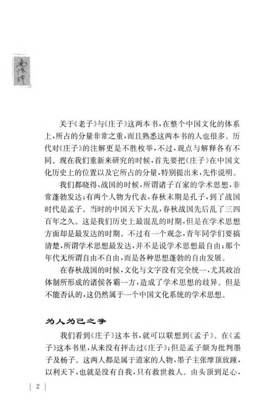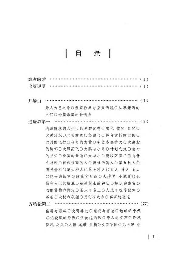 《庄子》一书在战国诸子百家中占有重要地位,历代归于道家,内容博大精深,涵盖世间、出世间的重要观念法则和人生修身养心之道,是中华文化最伟大不朽的经典之一。《庄子》文章汪洋恣肆,仪态万方,但于现代人来说,却不免有其论莫测高深,其文艰深难明之感,一般读者欲依靠原文吸取其丰富的思想养料实为难事。