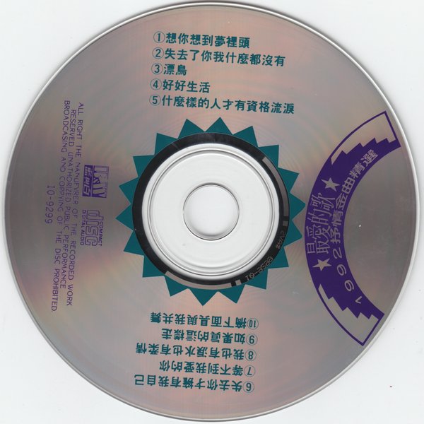 专辑中文名: 1992抒情金曲精选·最爱的歌