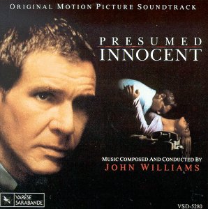 主题旋律(序曲Presumed Innocent,终曲End Credits,这两首作品的内容基本上大同小异)是整部配乐最好的作品,虽然在器乐的编制上阵容小巧,但可以说是John Williams写过最出色的主题作品之一,旋律性优美感伤,结构上有完整的起承转合,铺陈的手法富有戏剧张力,而且作风优雅稳健,钢琴与法国号的表现呈现了一股悲伤黑暗的特质,电子音色的融入也有很特殊的效果,幽暗的质感并不是那种张牙舞爪的黑暗惊悚,而是一种无奈与无助的沮丧.John Williams”几乎”以这个主题旋律贯串全场,同时也作为音乐上的Love Theme,除了在序曲与终曲中以管絃交响的编制演出外,其餘的表现手法都相当内敛幽静,选用的乐器除了以缓缓流转,若隐若现的钢琴为主奏外,多半是一些音质纤细微弱的乐器如竖琴,铁琴一类,电子音乐的音色也呈现一股沈鬱迷离的深幽感受,在整体音色上和<意外的旅客>或<直到永远>有些类似,但基本上要幽暗阴鬱的多,有时觉得好像一段段感伤幽暗的水晶音乐.