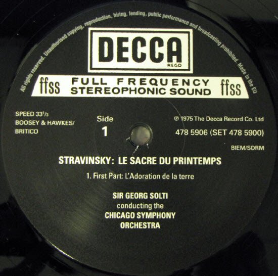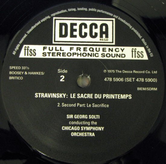 在四零年代里,Decca用当时最先进的全频录音技术录下了高传真的七十八转唱片,之后的「全频段录音」(FFRR - Full Frequency Range Recording)更在1946年诞生,许多珍贵的录音如今随著早期唱片转录技术的圆熟,终於让我们得以见识到当年录音有多细腻与出色。到了五~年代中期,立体声录音发展成熟,Decca的「全频段立体声」(FFSS - Full Frequency Stereophonic Sound) 成为全球最受瞩目的优异录音技术,而录音的黄金年代也由此诞生。