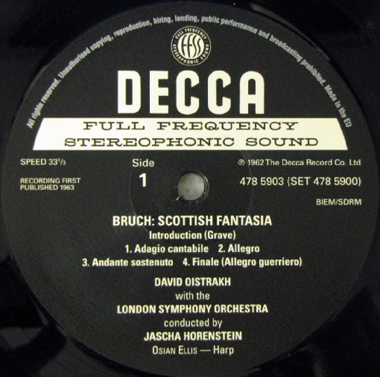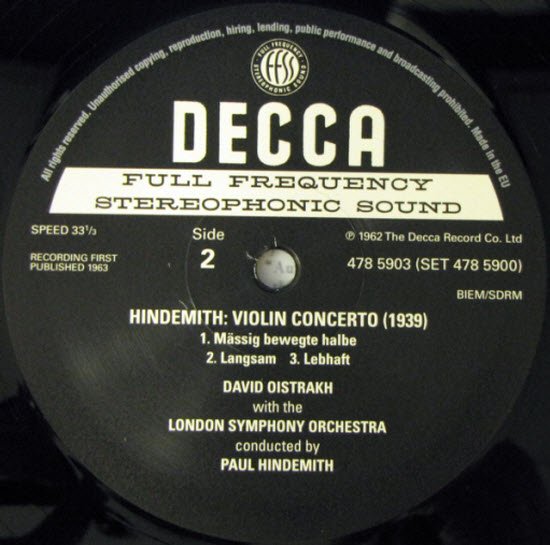 David Oistrakh London Symphony Orchestra Jascha Horenstein (Bruch) & Paul Hindemith (Hindemith)