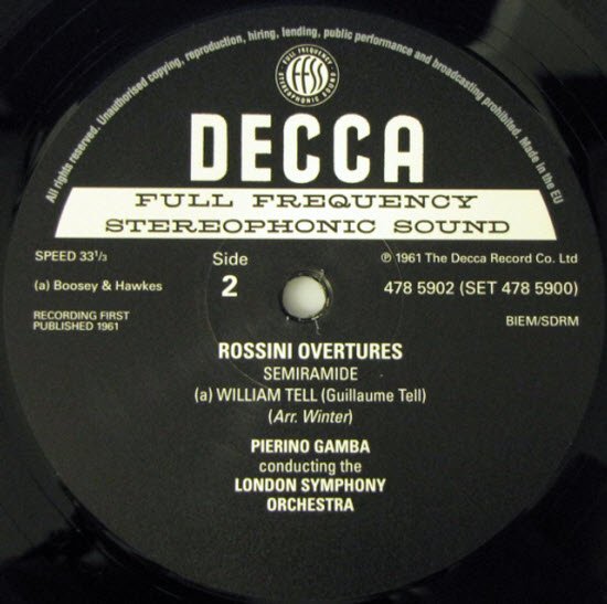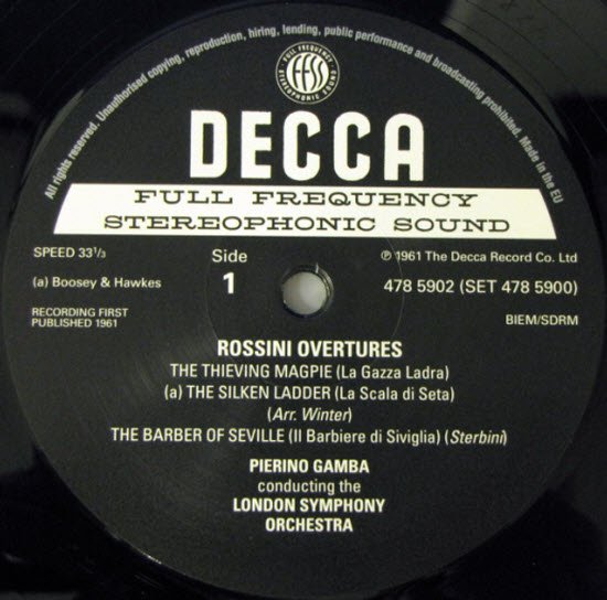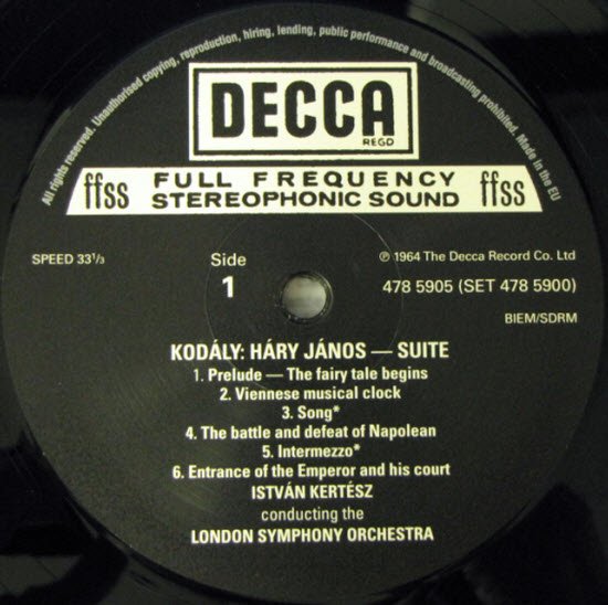 Decca自1937年接收了原本的West Hampstead录音室后,延用了该录音室旗下一群出色的录音工程师,他们在七十八转的唱片中悟出一套如何录下清晰高频的独门技术,在经过二次大战洗礼后,再接收了英国战时雷达声纳技术的提昇,让该公司在「高传真」录音技术上,领先对岸的美国有十年之久,也就是早在四零年代初,Decca就已经超前美国的RCA和Mercury两家公司,开始进行高传真的录音,我们可以从聆听这套黑胶唱片听到明证。