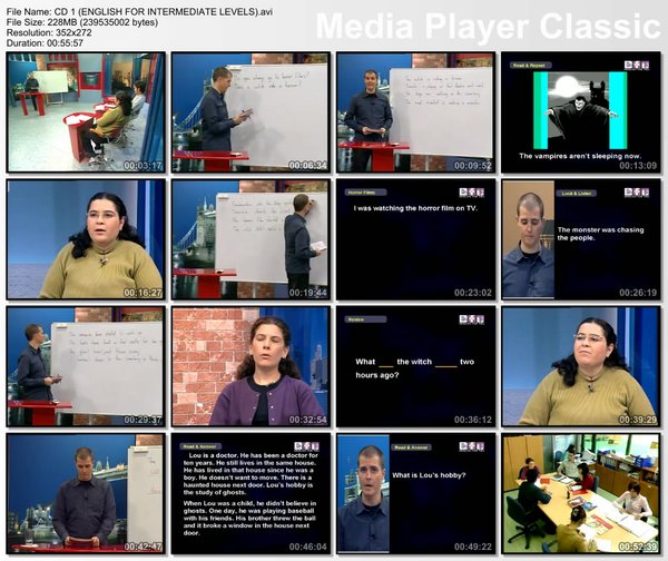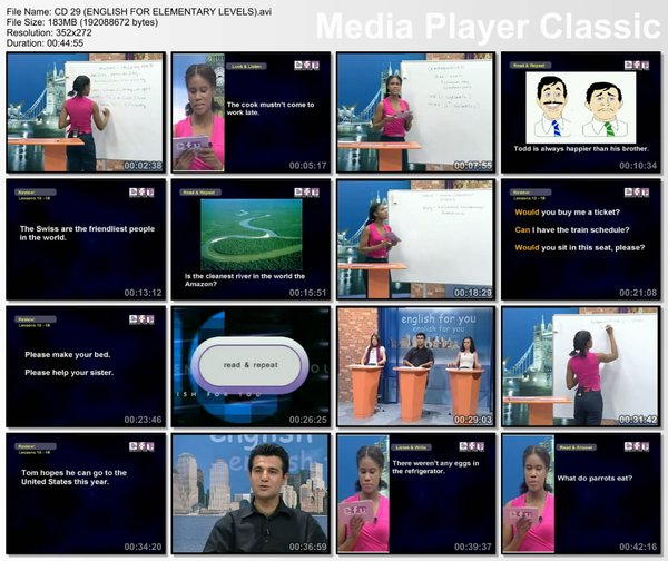 此帖提供下载的是基础级和中等级(我从rapidshare上下载的) ENGLISH FOR ELEMENTARY LEVELS cd31-60 ENGLISH FOR INTERMEDIATE LEVELS cd61-80 全套课程包括入门级, 基础级和中等级. 通过这套课程你可以在家里自学英语. 所有课程和真实课堂上一样, 当然老师是英文讲解的. 总共80课, 每课一小时左右, 除了老师讲解和会话交谈,课尾还有五分钟左右真实生活情景对话. 入门级在这个帖子里下 http://board.VeryCD.com/t477381.html
