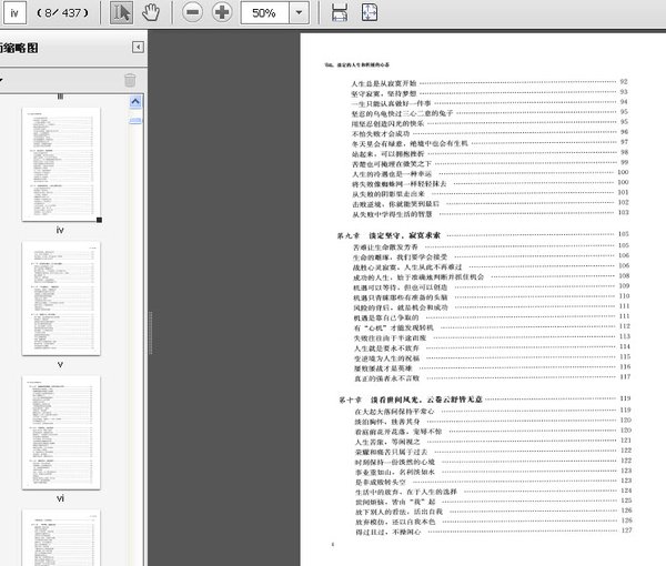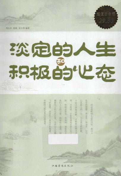 : 上篇 淡定的人生 第一章 摒弃浮躁,静心修行享安宁 做人最忌浮躁 操纵你的是隐蔽在内部的信念 火气太大,难免被列入作恶者之中 暴躁是发生不幸的导火索 用沉默来回应无理 一只发条上得太紧的表不会走得太久 卸下情绪的重负,对自己说“没关系” 给忧虑一个便捷的出口 用运动来驱散心头的郁闷 世上难以突破的关口是“心狱” 心如明镜台,时时需拂拭 与沮丧为伍,人生就会成为一场噩梦 多疑的人首先猜测的是自己 仇恨的阴影下不会有多彩的天空 抑郁,心灵的一次“流感” 放下焦虑,才能得到安宁 第二章 路过繁华处,低头观自在 欲望让你的人生烦恼不安 欲望是一条看不见的灵魂锁链 名利不过是生命的尘土 尘世浮华如过眼云烟 最长久的名声也是短暂的 身外物,不奢恋 给自己的欲望打折 远离名利的烈焰,让生命逍遥自由 知足可以挪去你的各种贪念 功成身退任自如 金钱不是唯一能满足心灵的东西 金钱的“生命”在于“运动” 赚钱无非是游戏,享受过程最重要 把赚钱当作乐趣,而不是负担 第三章 上善若水,水善利万物而不争 “不辩”是一种大胸襟 “不争”和“无求”是远离烦恼的妙法 避免无谓的争论 不斗气,不生气 放下名利之争是明智之举 圣人之道,为而不争 无所争未必无所得 争一步不如让一步 争一世而不争一时 只有无争,才能无忧 主动让人是一种可敬的智慧 过犹不及,适可而止 甩掉“金科玉律”的锁链 摘下有色眼镜,不以一时荣辱取人 别把自己太当回事 第四章 悠然绽放,以花的姿态 从容,以一朵花开的姿态 生命的原生态:不矫揉,不做作 顺境舒展身心,逆境安顿自己 淡看世间风光,枯荣皆有惊喜 想开了是天堂,想不开就是地狱 淡定从容,更能让人折服 失去,生命中永恒的主题 受挫不惊,解困不喜 “不以物喜,不以己悲”是我们追求的境界 人生是一个自然规律 一呼一吸间,看透自然的归宿 既然缘变无迹可寻,不如娴雅度过一生 第五章 一念心清净,莲花处处开 静心是轻盈快乐的生活之道 是谁束缚了我们的内心 当下的内容是唯一的真实 静下心来,成功就在不远处 安贫乐道,静享人生 止水澄波,悟道须静 享受生命的大自在 何必寻愁觅恨怨东风 愈放下愈快乐 放下缠绕在心头的烦恼事 脱去抱怨的心灵枷锁 多疑如迷雾,隔开了心与心的信任 卸掉防御的铠甲,打开自闭的心灵 走出不平衡的心理误区 退隐心灵,保持精神世界的宁静 天真,人生如若初相见 一个人思虑太多,就会失去做人的快乐 第六章 取舍皆淡定,得失俱从容 必要的舍弃是为了更好地得到 不以物喜、不以己悲是人生的大智慧 从得中失去,才能从失中获得 聪明人不计较得失 懂得舍弃的艺术,将拥有更多的幸福 舍得,有舍才有得 舍要理智,得靠智慧 暂时的失去会获得新的拥有 左手给予,右手收获 明智的舍弃,是一个人进取的前提 收获的代价就是学会放弃 看淡得失,也就减少了痛苦 放下是一种自由和觉悟 选择是竞赛,放弃是境界 除了内心的喜乐,一切得失都不重要 第七章 平心静气,三思而行 避免冲突,平和地面对世界 察觉自己的不足 冲动是魔鬼,三思而后行 阳光心态缔造和谐的人际关系 心态阳光,身心才更健康 冲动做事就如走火入魔 切忌感情用事,给行为加点理性 诫已 控制情绪,心中藏一片清凉 控制自己的情绪 心宽之人,看世界满是鸟语花香 百川人海,宽心制怒成大器 若容不下生活,生活也容不下你 气量大一点,生活才祥和 第八章 人生得于淡定时,成功须过寂寞关 人这一辈子总有一个时期需要卧薪尝胆 只专注于脚下的路 人生总是从寂寞开始 坚守寂寞,坚持梦想 一生只能认真做好一件事 坚忍的乌龟快过三心二意的兔子 用坚忍创造闪光的快乐 不怕失败才会成功 冬天里会有绿意,绝境中也会有生机 站起来,可以拥抱挫折 苦楚也可掩埋在微笑之下 人生的冷遇也是一种幸运 将失败像蜘蛛网一样轻轻抹去 从失败的阴影里走出来 击败逆境,你就能笑到最后 从失败中学得生活的智慧 第九章 淡定坚守,寂寞求索 苦难让生命散发芳香 生命的雕琢,我们要学会接受 战胜心灵寂寞,人生从此不再难过 成功的人生,始于准确地判断并抓住机会 机遇可以等待,但也可以创造 机遇只青睐那些有准备的头脑 风险的背后,就是机会和成功 机遇是靠自己争取的 有“心机”才能发现转机 失败往往,由于半途而废 人生就是要永不放弃 变逆境为人生的祝福 屡败屡战才是英雄 ...............