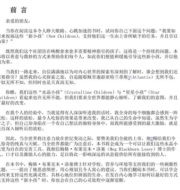 在地球上生活着许多这样的新小孩,他们不被人理解,被视为异类而遭压制。如果你在身边发现这样的小孩:智力超高、直觉性强、对环境敏感、心灵能力超强、经常“胡言乱语”,请不要把他们看作发育异常,他们可能就是来自宇宙的新小孩。