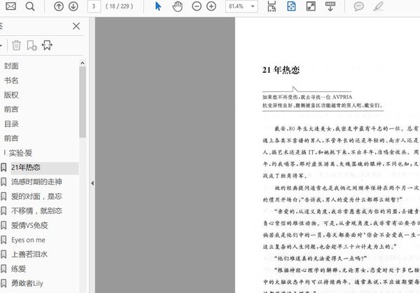 : 前言 第一章 实验·爱 21年热恋 流感时期的走神 爱的对面,是忘 不移情,就别恋 爱情VS免疫 Eyes on me 上善若泪水 练爱 勇敢者Lily 了不起的欲望制造器 毋需知我如心 是的,但是…… 年岁啊,它是种忧伤 爱是个好东西 第二章 解析·性 所以说你敢用手机发艳照吗? 右脑爱,左脑不爱 小意外 离开那些高级动物,以最快的速度 不是冷笑话 非礼,可想 以伪装对伪装 精神作为性感的先行 苍井空,不爱你不是我的错 低成本快乐 为高潮找到一个对应物 成人业及其所带来的 盗性 雄性危机应对 如果在冬夜,我就是那旅人 第三章 论·关系 既世界如斯残酷 调情在微博时代 下一战,幸福 花花了眼 你是他的快乐一种,而它是另一种 聪明者被爱 朱丽叶的生理周期 与生活和解 床榻分治 辨味 见好人就发卡 再也不是当初拥抱 感觉借语气生存 手感 亲密,所谓何事? 再见,小魔鬼 当我们都已成为过往的囚徒 亦美亦罪亦庄亦谐 对角结构最是稳定 第四章 情感·圈 暴露疗法 目标在整个SNS 资本论 三角不能作为稳定结构 语言体系界定 从守护爱到守护钱包 对不起,我不负责赞美你 变种阿尔法女 审美 烟 和不完整性带来的缺憾一起活下去 不如都养 一边恋爱,一边单身