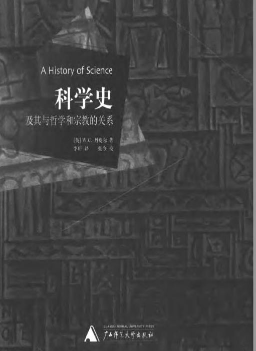 W.C.丹皮尔 20世纪英国著名科学史家。以批判、实证精神对科学思想发展史进行了深入研究,成就蜚然,有《物理科学的发展近况》、《剑桥现代史》中的“科学时代”部分、《大英百科全书》第十一版中的《科学》一文、《现代科学的诞生》等著文,为现当代科学史研究体系的确立和发展作出了卓越贡献。《科学史及其与哲学和宗教的关系》一书已成为当代学术研究绕不过去的科学史经典名著。