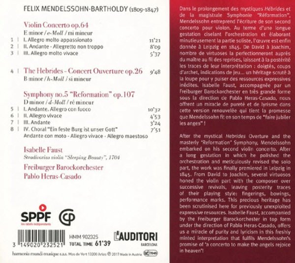 Mendelssohn* – Isabelle Faust, Freiburger Barockorchester, Pablo Heras-Casado – Violin Concerto, Symphony No. 5 'Reformation', The Hebrides