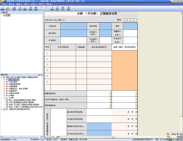 5、模板双击到工程时,可以不弹出表格名称录入窗口,先快速增加表格,以后可以在表格上修改验收部位,或者按F6键来修改表格名称。(在软件主菜单[系统]->[软件设置]里配置)