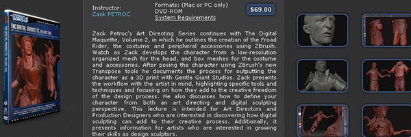 Zack Petroc's Art Directing Series continues with The Digital Maquette, Volume 2, in which he outlines the creation of the Froad Rider, the costume and peripheral accessories using ZBrush. Watch as Zack develops the character from a low-resolution organized mesh for the head, and box meshes for the costume and accessories. After posing the character using ZBrush's new Transpose tools he documents the process for outputting the character as a 3D print with Gentle Giant Studios. Zack presents the workflow with the artist in mind, highlighting specific tools and techniques and focusing on how they add to the creative freedom of the design process. He also discusses how to define your character from both an art directing and digital sculpting perspective. This lecture is intended for Art Directors and Production Designers who are interested in discovering how digital sculpting can add to their creative process. Additionally, it presents information for artists who are interested in growing their skills as design sculptors.